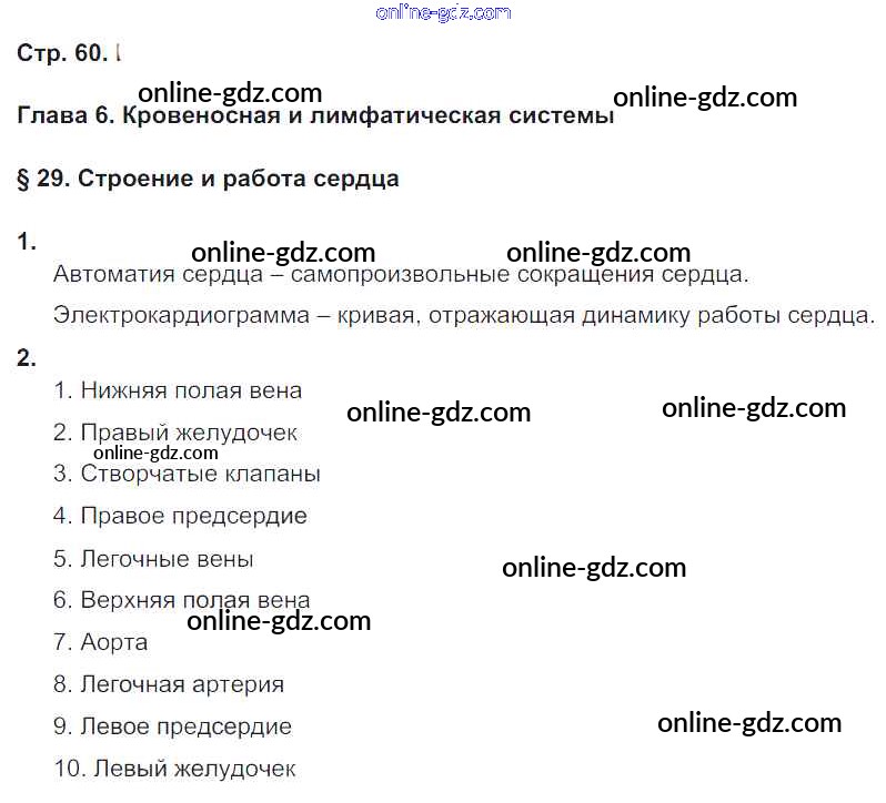 Готовые домашние задания по Биологии за 8 класс Рабочая тетрадь Жемчугова, Романова Инновационная школа 2017 - Страницы 60