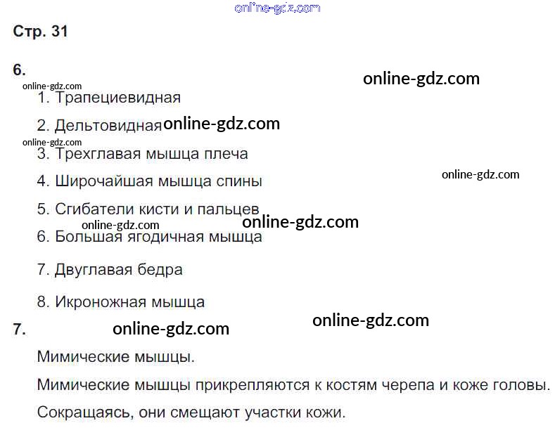 Готовые домашние задания по Биологии за 8 класс Тетрадь-тренажёр Сухорукова, Кучменко Сферы 2017 - Страницы 31