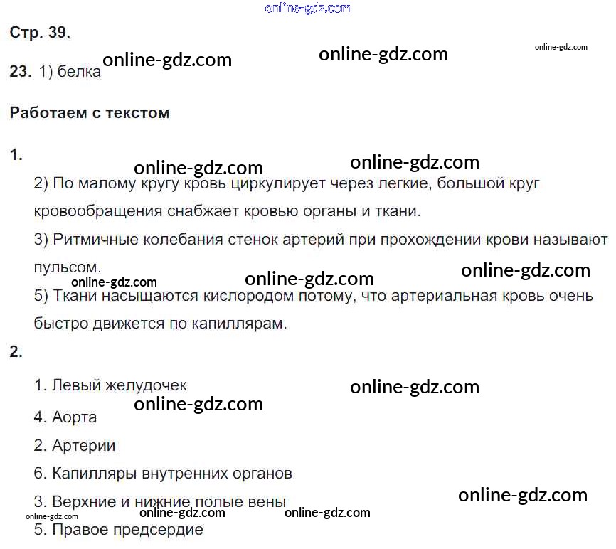 Готовые домашние задания по Биологии за 8 класс Тетрадь-тренажёр Сухорукова, Кучменко Сферы 2017 - Страницы 39