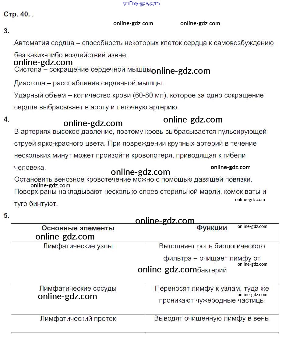 Готовые домашние задания по Биологии за 8 класс Тетрадь-тренажёр Сухорукова, Кучменко Сферы 2017 - Страницы 40