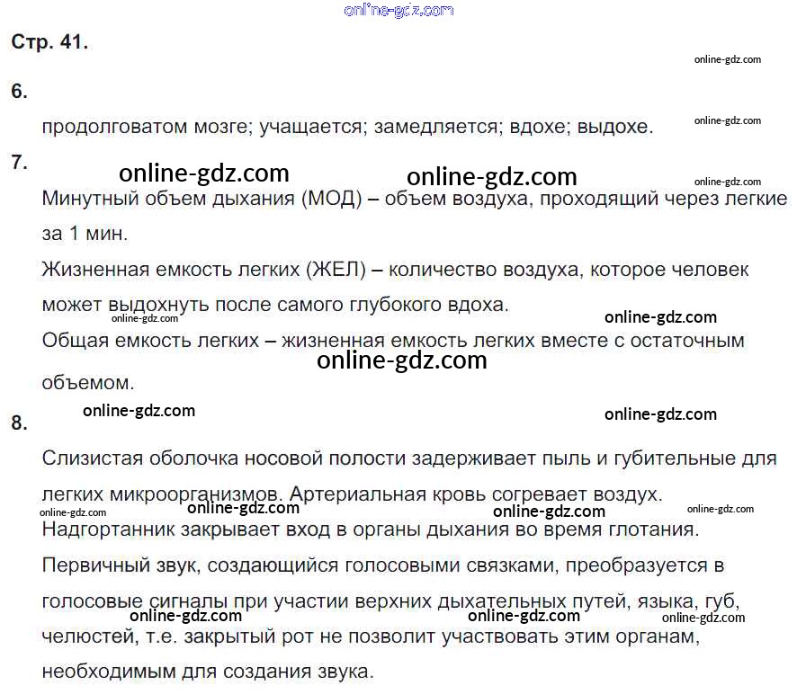 Готовые домашние задания по Биологии за 8 класс Тетрадь-тренажёр Сухорукова, Кучменко Сферы 2017 - Страницы 41