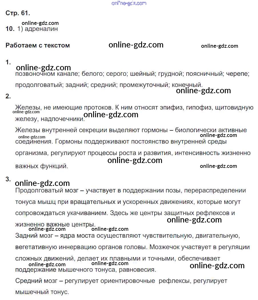 Готовые домашние задания по Биологии за 8 класс Тетрадь-тренажёр Сухорукова, Кучменко Сферы 2017 - Страницы 61