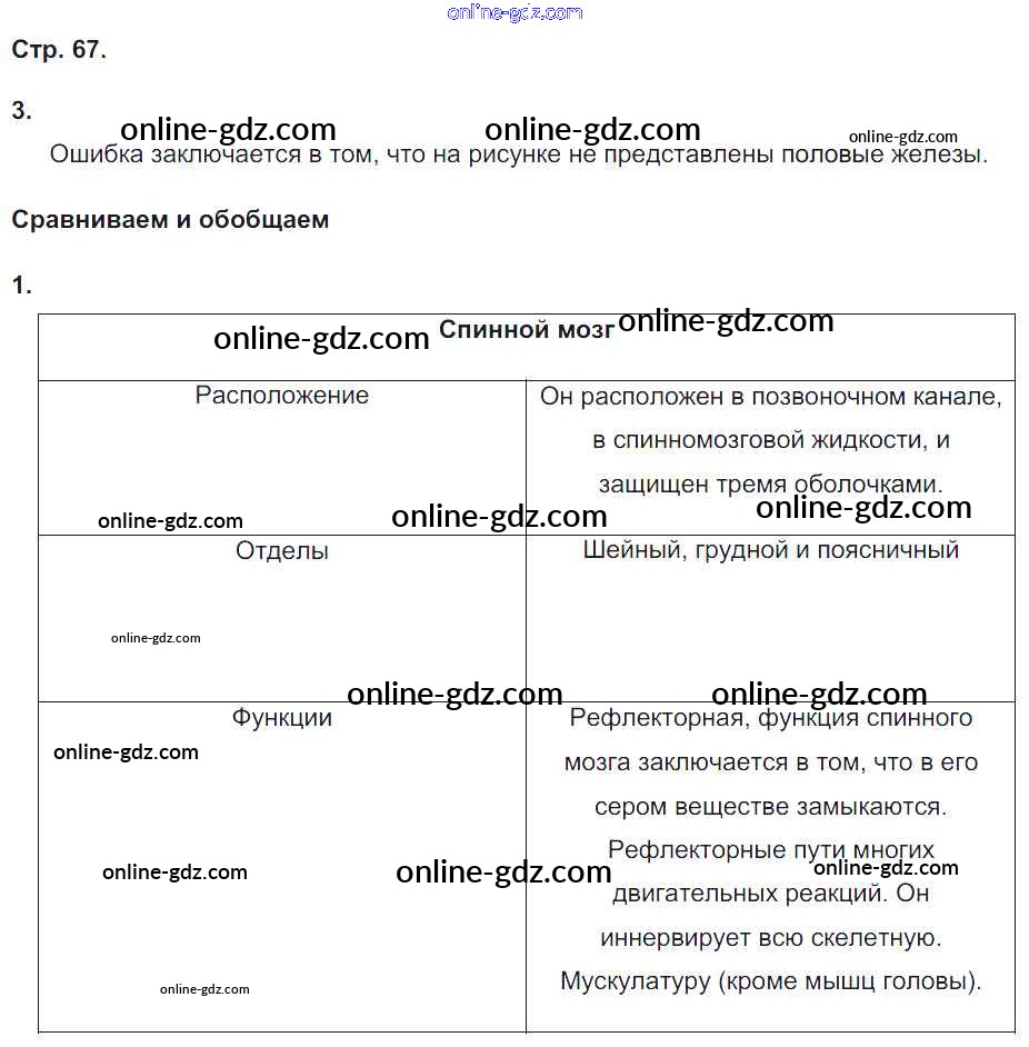 Готовые домашние задания по Биологии за 8 класс Тетрадь-тренажёр Сухорукова, Кучменко Сферы 2017 - Страницы 67