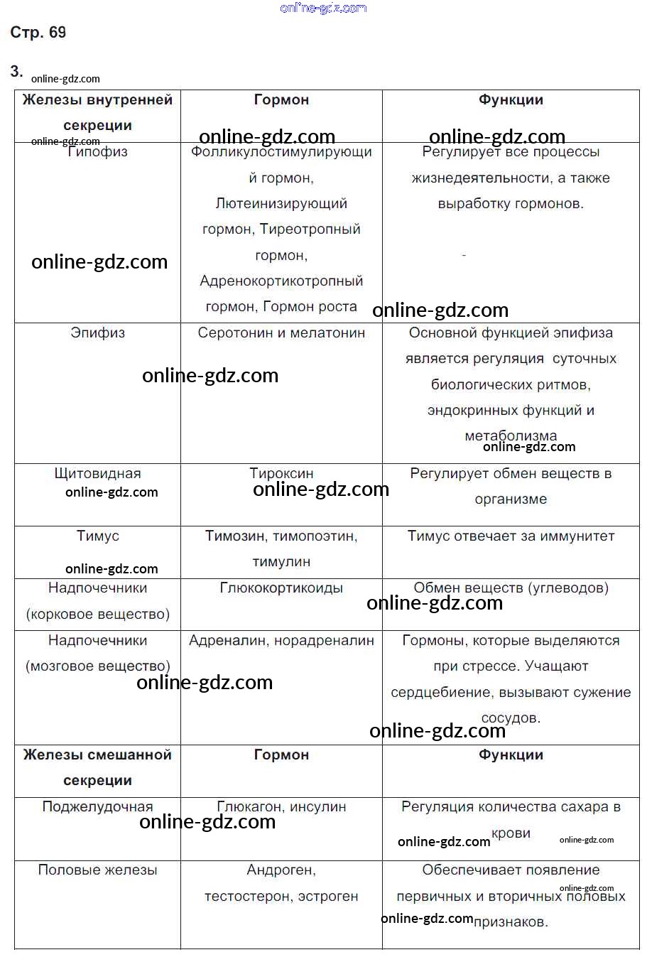 Готовые домашние задания по Биологии за 8 класс Тетрадь-тренажёр Сухорукова, Кучменко Сферы 2017 - Страницы 69