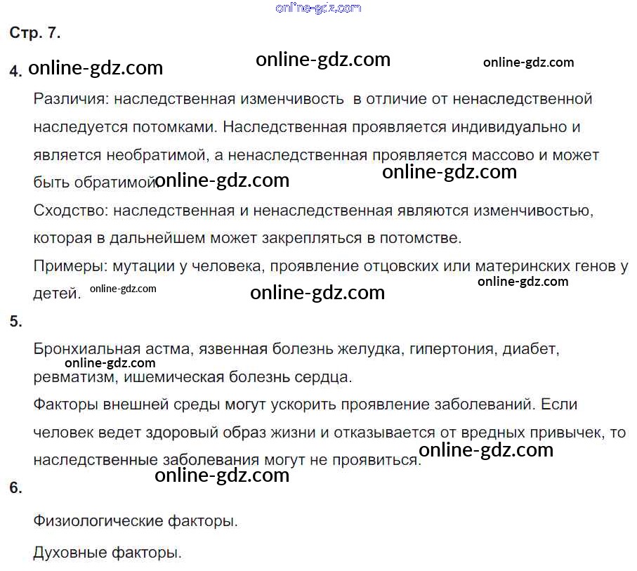 Готовые домашние задания по Биологии за 8 класс Тетрадь-тренажёр Сухорукова, Кучменко Сферы 2017 - Страницы 7