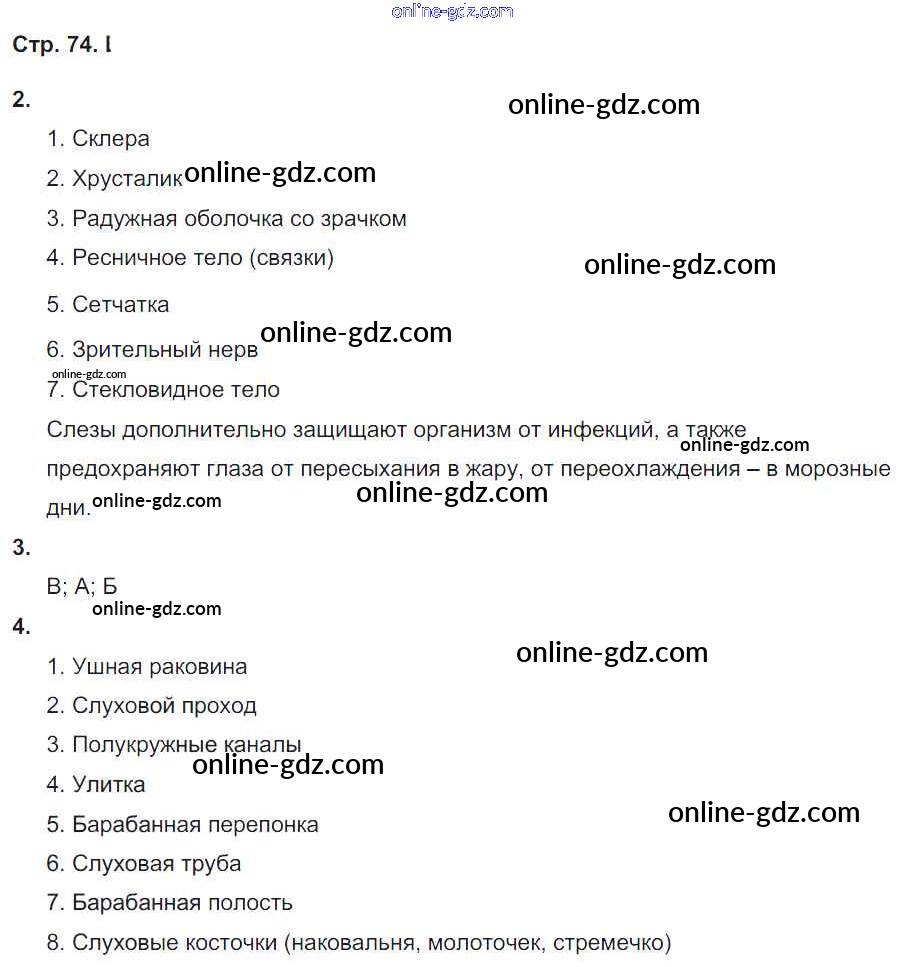 Готовые домашние задания по Биологии за 8 класс Тетрадь-тренажёр Сухорукова, Кучменко Сферы 2017 - Страницы 74
