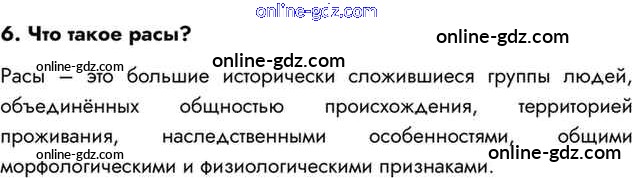Готовые домашние задания по Биологии за 8 класс Учебник Драгомилов, Маш Алгоритм успеха 2022 - Вопросы §3. Происхождение человека. Расы 6
