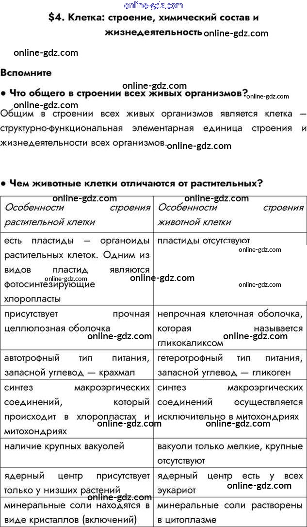 §4. Клетка: строение, химический состав и жизнедеятельность