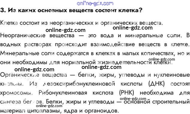 Готовые домашние задания по Биологии за 8 класс Учебник Драгомилов, Маш Алгоритм успеха 2022 - Вопросы §4. Клетка: строение, химический состав и жизнедеятельность 3