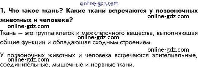 Готовые домашние задания по Биологии за 8 класс Учебник Драгомилов, Маш Алгоритм успеха 2022 - Вопросы §5. Ткани 1