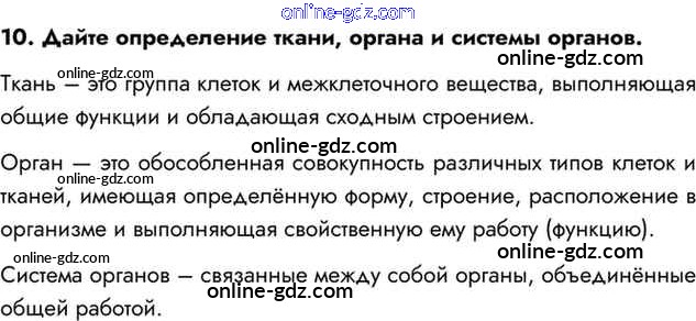 Готовые домашние задания по Биологии за 8 класс Учебник Драгомилов, Маш Алгоритм успеха 2022 - Подведём итоги Глава 1. Организм человека. Общий обзор 10