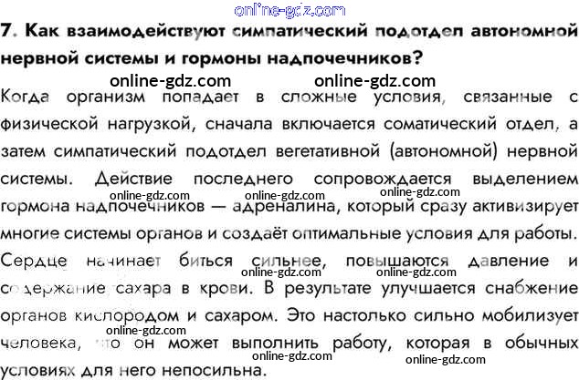 Готовые домашние задания по Биологии за 8 класс Учебник Драгомилов, Маш Алгоритм успеха 2022 - Вопросы §10. Автономный (вегетативный) отдел нервной системы. Нейрогуморальная регуляция 7