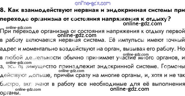 Готовые домашние задания по Биологии за 8 класс Учебник Драгомилов, Маш Алгоритм успеха 2022 - Вопросы §10. Автономный (вегетативный) отдел нервной системы. Нейрогуморальная регуляция 8
