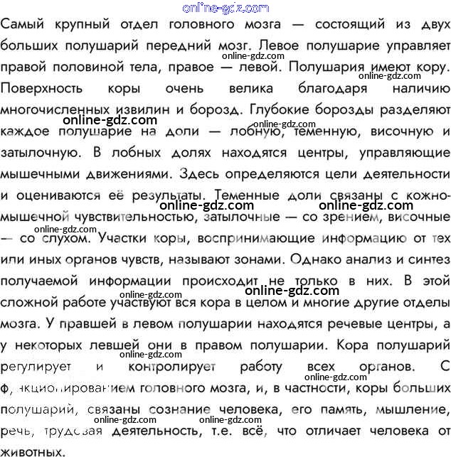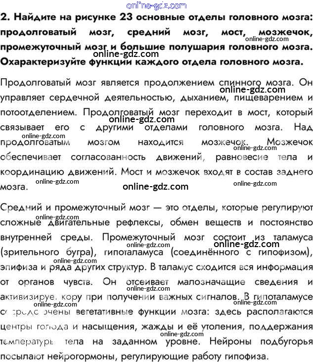 Готовые домашние задания по Биологии за 8 класс Учебник Драгомилов, Маш Алгоритм успеха 2022 - Вопросы §12. Головной мозг: строение и функции 2