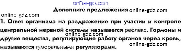 Готовые домашние задания по Биологии за 8 класс Учебник Драгомилов, Маш Алгоритм успеха 2022 - Дополните предложения Глава 2. Регуляторные системы организма 1