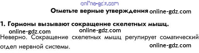 Готовые домашние задания по Биологии за 8 класс Учебник Драгомилов, Маш Алгоритм успеха 2022 - Отметьте верные утверждения Глава 2. Регуляторные системы организма 1
