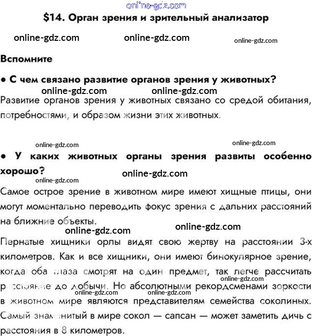 Готовые домашние задания по Биологии за 8 класс Учебник Драгомилов, Маш Алгоритм успеха 2022 - §14. Орган зрения и зрительный анализатор Глава 3. Органы чувств. Анализаторы Вспомним