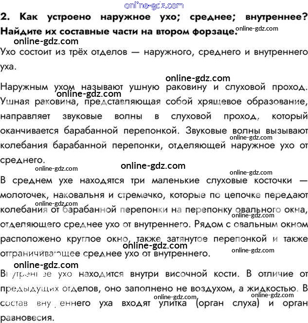 Готовые домашние задания по Биологии за 8 класс Учебник Драгомилов, Маш Алгоритм успеха 2022 - Вопросы §16. Органы слуха и равновесия. Их анализаторы 2