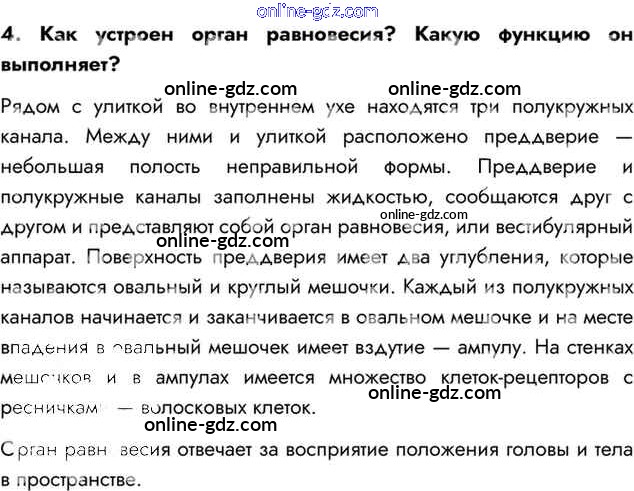 Готовые домашние задания по Биологии за 8 класс Учебник Драгомилов, Маш Алгоритм успеха 2022 - Вопросы §16. Органы слуха и равновесия. Их анализаторы 4