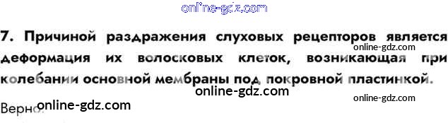 Готовые домашние задания по Биологии за 8 класс Учебник Драгомилов, Маш Алгоритм успеха 2022 - Отметьте верные утверждения Глава 3. Органы чувств. Анализаторы 7