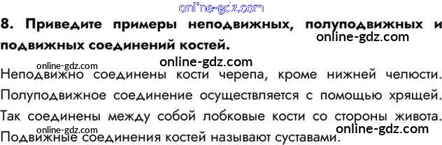 Готовые домашние задания по Биологии за 8 класс Учебник Драгомилов, Маш Алгоритм успеха 2022 - Вопросы §18. Скелет. Строение, состав и соединение костей 8