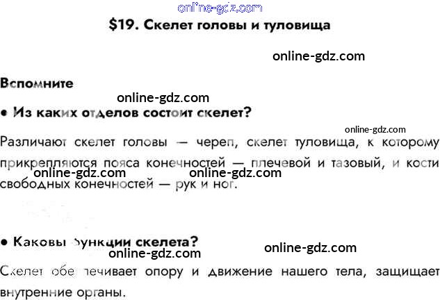 Готовые домашние задания по Биологии за 8 класс Учебник Драгомилов, Маш Алгоритм успеха 2022 - §19. Скелет головы и туловища Глава 4. Опорно-двигательная система Вспомним