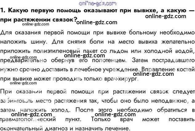 Готовые домашние задания по Биологии за 8 класс Учебник Драгомилов, Маш Алгоритм успеха 2022 - Вопросы §21. Первая помощь при травмах: растяжении связок, вывихах суставов, переломах костей 1