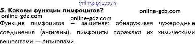 Готовые домашние задания по Биологии за 8 класс Учебник Драгомилов, Маш Алгоритм успеха 2022 - Вопросы §25. Внутренняя среда. Значение крови и её состав 5