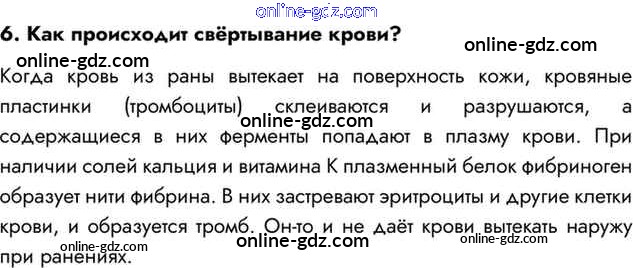 Готовые домашние задания по Биологии за 8 класс Учебник Драгомилов, Маш Алгоритм успеха 2022 - Вопросы §25. Внутренняя среда. Значение крови и её состав 6
