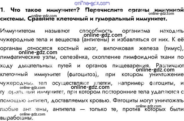 Готовые домашние задания по Биологии за 8 класс Учебник Драгомилов, Маш Алгоритм успеха 2022 - Вопросы §26. Иммунитет 1
