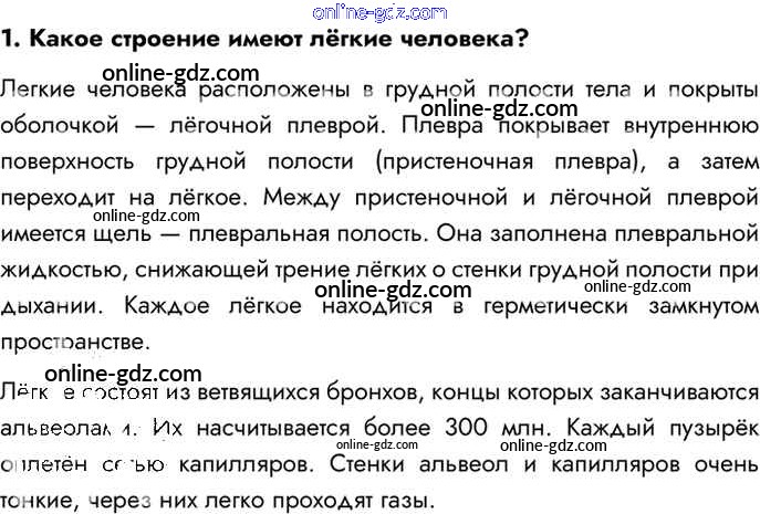 Готовые домашние задания по Биологии за 8 класс Учебник Драгомилов, Маш Алгоритм успеха 2022 - Вопросы §33. Строение лёгких. Газообмен в лёгких и тканях 1