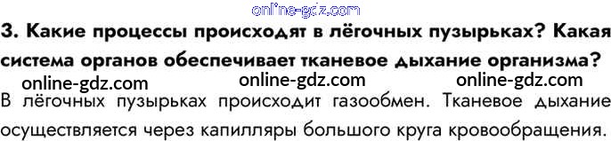 Готовые домашние задания по Биологии за 8 класс Учебник Драгомилов, Маш Алгоритм успеха 2022 - Вопросы §33. Строение лёгких. Газообмен в лёгких и тканях 3
