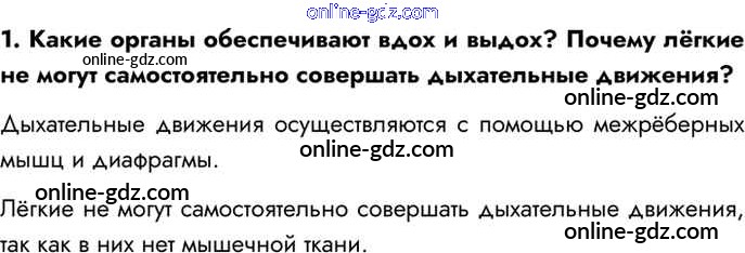 Готовые домашние задания по Биологии за 8 класс Учебник Драгомилов, Маш Алгоритм успеха 2022 - Вопросы §34. Дыхательные движения. Регуляция дыхания 1