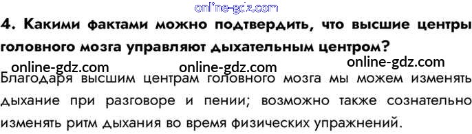 Готовые домашние задания по Биологии за 8 класс Учебник Драгомилов, Маш Алгоритм успеха 2022 - Вопросы §34. Дыхательные движения. Регуляция дыхания 4