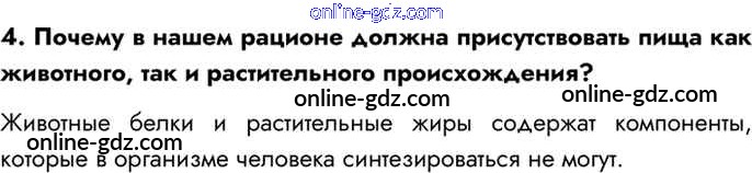 Готовые домашние задания по Биологии за 8 класс Учебник Драгомилов, Маш Алгоритм успеха 2022 - Вопросы §37. Значение пищи и её состав 4