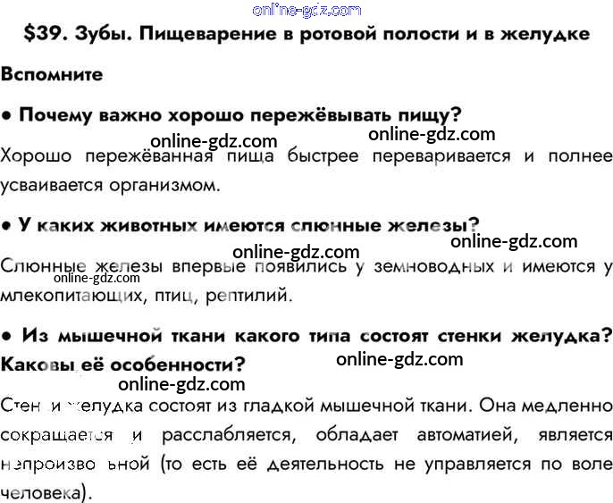 §39. Зубы. Пищеварение в ротовой полости и в желудке