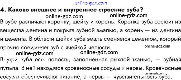 Готовые домашние задания по Биологии за 8 класс Учебник Драгомилов, Маш Алгоритм успеха 2022 - Вопросы §39. Зубы. Пищеварение в ротовой полости и в желудке 4