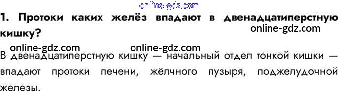 Готовые домашние задания по Биологии за 8 класс Учебник Драгомилов, Маш Алгоритм успеха 2022 - Вопросы §40. Пищеварение в кишечнике. Всасывание питательных веществ 1