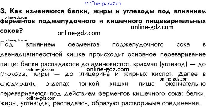 Готовые домашние задания по Биологии за 8 класс Учебник Драгомилов, Маш Алгоритм успеха 2022 - Вопросы §40. Пищеварение в кишечнике. Всасывание питательных веществ 3