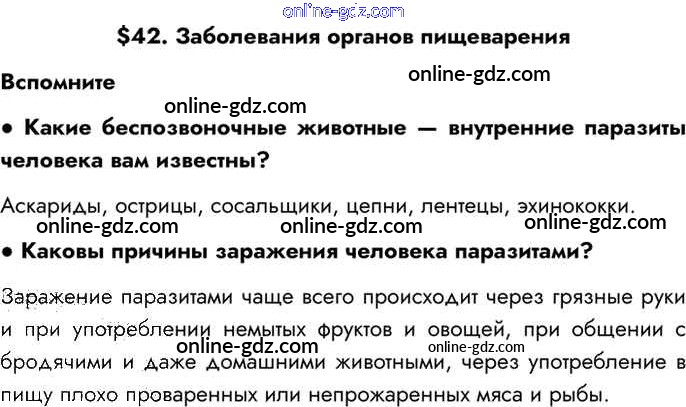 Готовые домашние задания по Биологии за 8 класс Учебник Драгомилов, Маш Алгоритм успеха 2022 - §§42. Заболевания органов пищеварения Глава 7. Пищеварительная система Вспомним