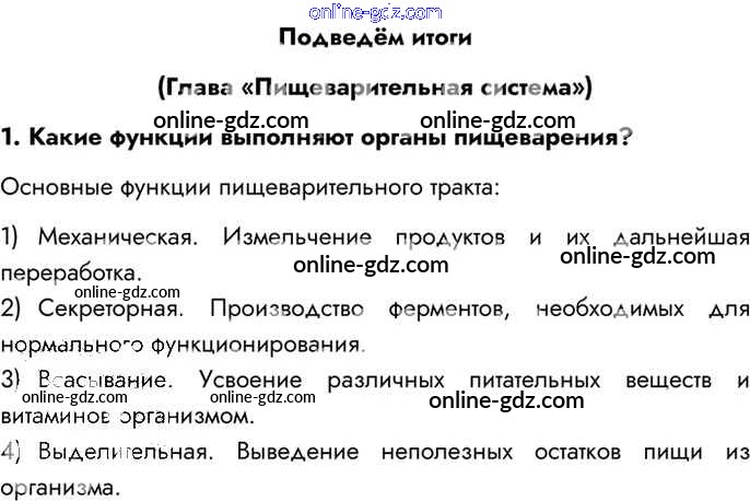 Готовые домашние задания по Биологии за 8 класс Учебник Драгомилов, Маш Алгоритм успеха 2022 - Подведём итоги Глава 7. Пищеварительная система 1