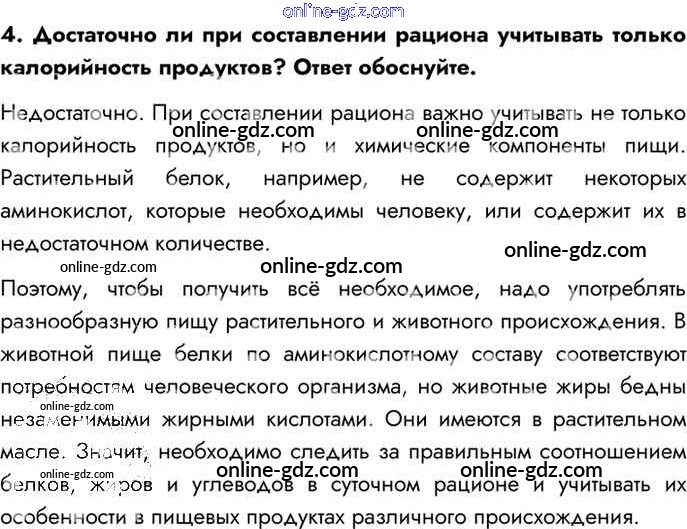 Готовые домашние задания по Биологии за 8 класс Учебник Драгомилов, Маш Алгоритм успеха 2022 - Вопросы §44. Нормы питания 4