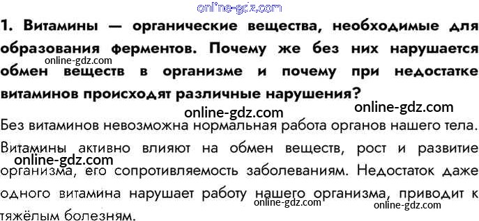Готовые домашние задания по Биологии за 8 класс Учебник Драгомилов, Маш Алгоритм успеха 2022 - Вопросы §45. Витамины 1