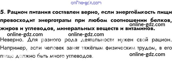 Готовые домашние задания по Биологии за 8 класс Учебник Драгомилов, Маш Алгоритм успеха 2022 - Отметьте верные утверждения Глава 8. Обмен веществ и энергии 5