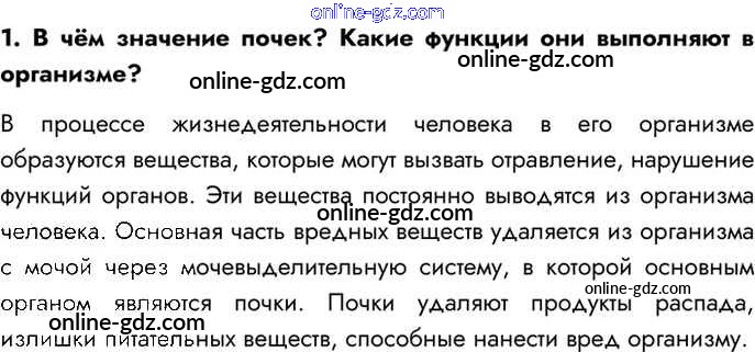 Готовые домашние задания по Биологии за 8 класс Учебник Драгомилов, Маш Алгоритм успеха 2022 - Вопросы §46. Строение и функции почек 1