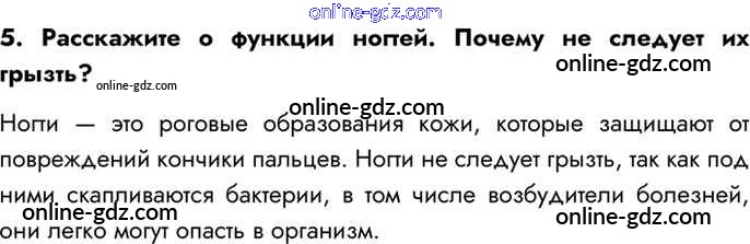 Готовые домашние задания по Биологии за 8 класс Учебник Драгомилов, Маш Алгоритм успеха 2022 - Вопросы §48. Значение кожи и её строение 5