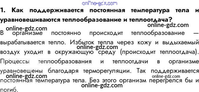 Готовые домашние задания по Биологии за 8 класс Учебник Драгомилов, Маш Алгоритм успеха 2022 - Вопросы §50. Роль кожи в терморегуляции. Закаливание. Оказание первой помощи при тепловом и солнечном ударах 1