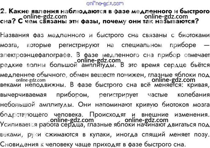 Готовые домашние задания по Биологии за 8 класс Учебник Драгомилов, Маш Алгоритм успеха 2022 - Вопросы §54. Биологические ритмы. Сон и его значение 2