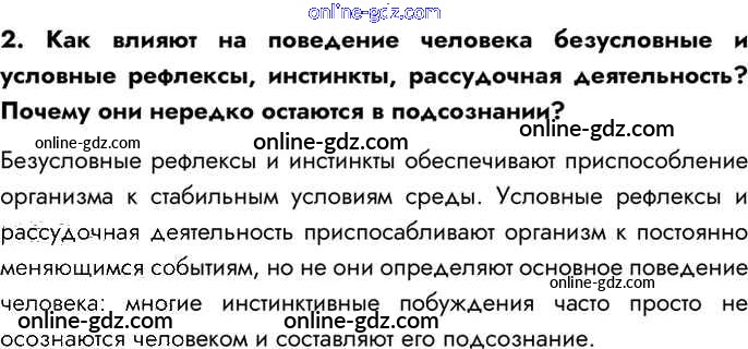 Готовые домашние задания по Биологии за 8 класс Учебник Драгомилов, Маш Алгоритм успеха 2022 - Вопросы §55. Особенности высшей нервной деятельности человека. Познавательные процессы 2