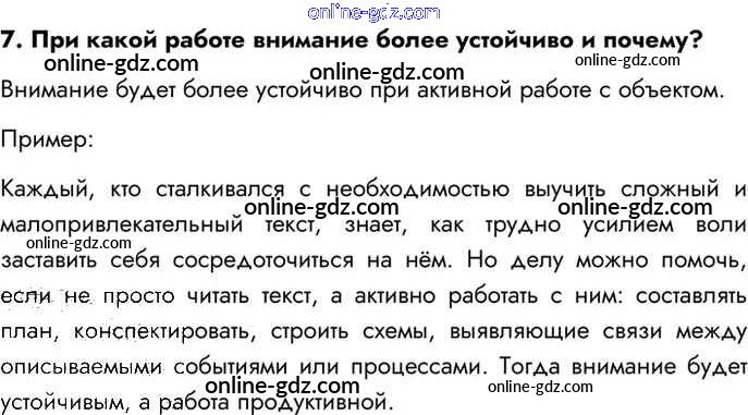 Готовые домашние задания по Биологии за 8 класс Учебник Драгомилов, Маш Алгоритм успеха 2022 - Вопросы §56. Воля и эмоции. Внимание 7